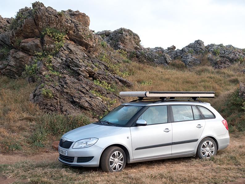 La citadine option break que je possède m’a déjà surpris par sa capacité d’emport et j’ai donc décidé de concevoir un module d’abri sur mesure dans l’objectif de réaliser un road trip à deux personnes à travers la péninsule ibérique pendant deux semaines, en été.